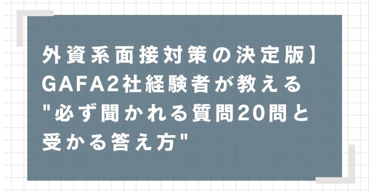 【外資系面接対策の決定版】GAFA2社経験者が教える”必ず聞かれる質問20+受かる答え方”